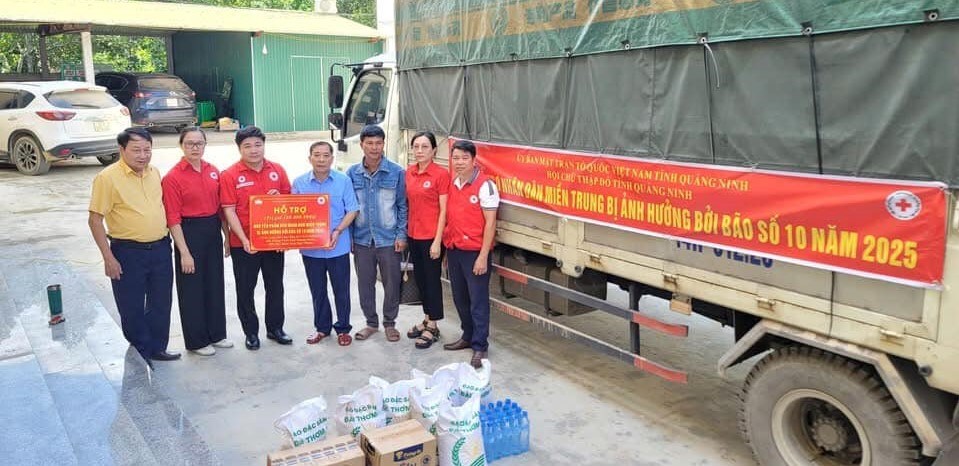Hưởng ứng Lời kêu gọi của Trung ương Hội Chữ thập đỏ Việt Nam, phát huy truyền thống nhân ái của dân tộc, trong chuyến công tác ngày 05/10/2025, Ủy ban MTTQ Việt Nam tỉnh, Hội Chữ thập đỏ tỉnh Quảng Ninh đã trực tiếp đến trao 200 thùng nước, 350 chai dầu ăn, 480 chai nước mắm và 3 tấn gạo đến bà con nhân dân vùng lũ, bị ảnh hưởng, thiệt hại bởi cơn bão số 10 năm 2025 tại xã Tân An, tỉnh Nghệ An.