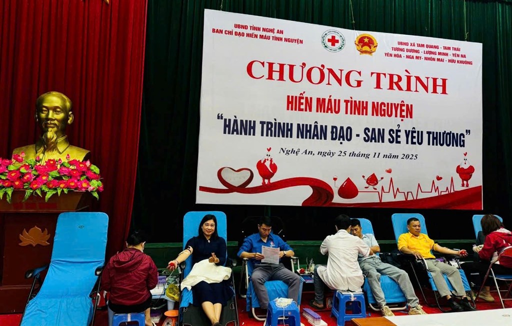 Sáng 25/11/2025, Ban Chỉ đạo Hiến máu tình nguyện tỉnh Nghệ An phối hợp với UBND các xã Tam Quang, Tam Thái, Tương Dương, Lượng Minh, Yên Na, Yên Hòa, Nga My, Nhôn Mai và Hữu Khuông tổ chức Ngày hội Hiến máu tình nguyện tại Trung tâm Văn hóa – Thể thao và Truyền thông xã Tương Dương, với chủ đề “Hành trình Nhân đạo – san sẻ yêu thương”.